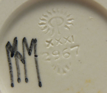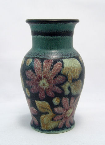 ROOKWOOD ART POTTERY VASE Margaret McDonald: Dated 1931, shape 2967, decorated and signed by M-M (Margaret McDonald). Green matte interior, floral exterior, 6'' h.