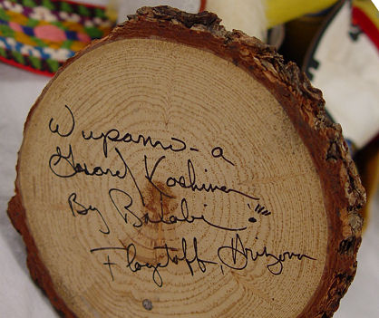 LARGE HOPI WUPAMO KACHINA DOLL, CA.1965-1970: 29 1/2'' tall figure, signed on bottom of base Balabi Flagstaff Arizona.