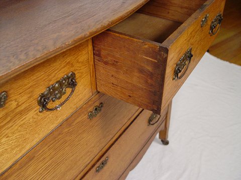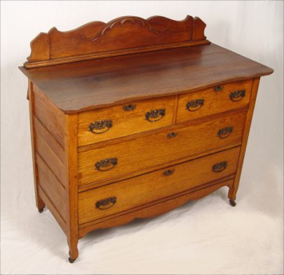 GOLDEN OAK CHEST ON CASTORS, CA. 1890: Two over two drawers, original hardware, 34'' h. x 20 1/2'' x 44 1/2''. Est. $250/350**