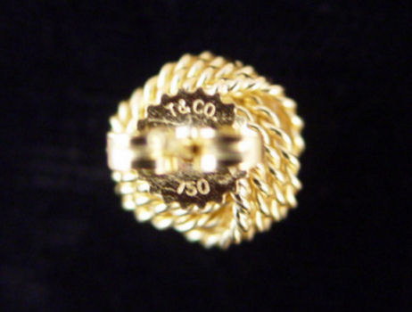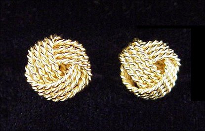 TIFFANY & CO 18KT GOLD POST EARRINGS: Tiffany Textured Knot post back earrings in 18k yellow gold, marked on post and back T&Co 750. Sold with Tiffany & Co blue divided bag and gift box. Est. $500/700**