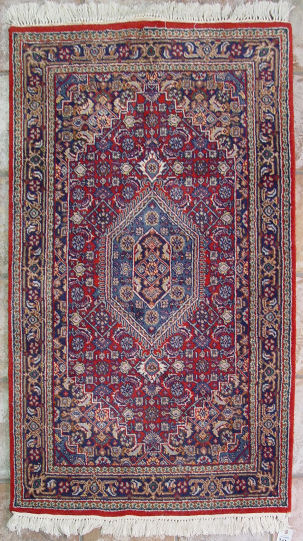 ORIENTAL RUG: Approx. 2'11'' x 4'10'', multi colored design on a red ground.