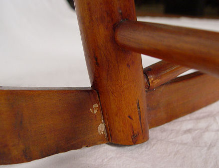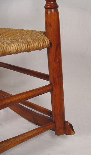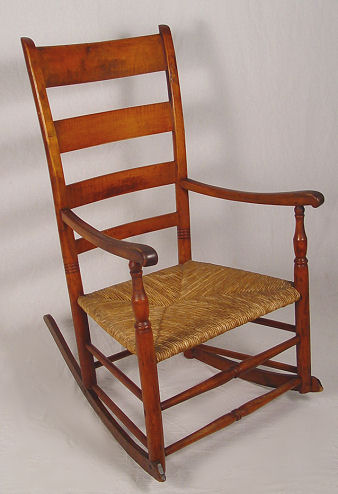 AMERICAN COUNTRY SLAT BACK ROCKING CHAIR: Rush seat, 44''h. x 25'' x 18''.