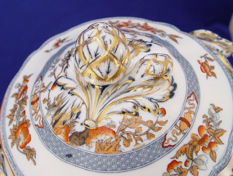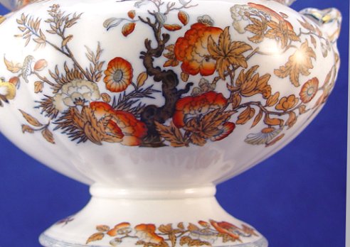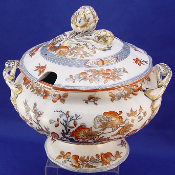 MID 1800'S ENGLISH WHITE IRONSTONE TUREEN: Classic white ironstone covered tureen with braided handles. 8 1/4'' dia., 10 1/4'' h.