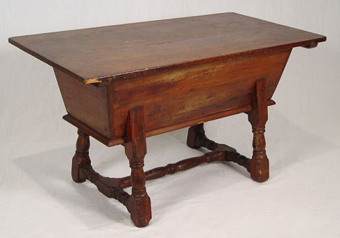 EARLY 19TH CENTURY DOUGH BOX: Open storage box on splayed legs with a removable lift top (44'' x 23''). The box is 24''h. Appears to be all original.