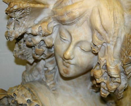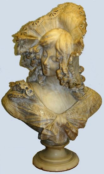 CIPRIANI, A., (Italian, 19/20th ): Italian maiden, Marble, 24'' h. x 19'' w., affixed to a beveled marble plinth with damage and repair, incised signature verso. Est. $2000/4000**