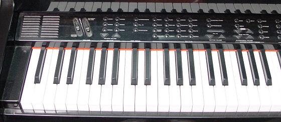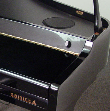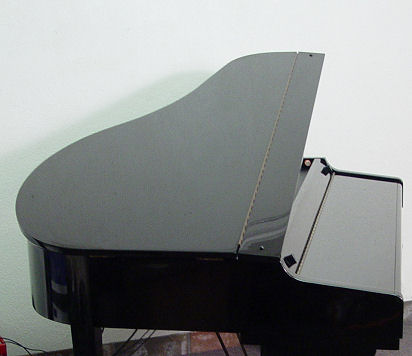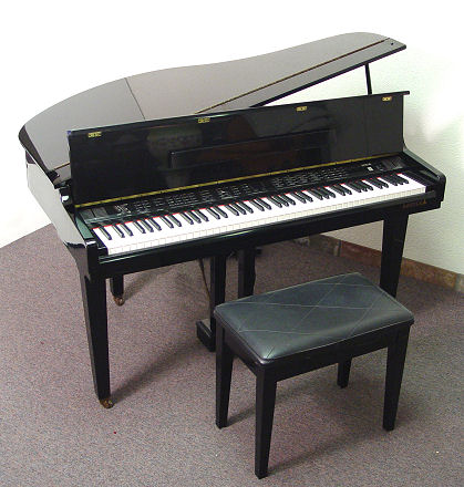 BABY GRAND SAMICK DIGITAL PIANO: SGP-151G. Black lacquer original finish, sold with bench, 8 discs, and the Yamaha Disk Orchestra module DOM-30. 33''h. x 55'' x 40''.