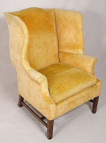 WING BACK CHAIR: Large wings, shabby chic worn upholstery. 41''h. x 30'' x 31''.