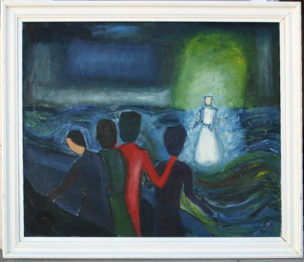 SORENSEN, Jens, (Danish, 1887-1953): ''Vandringen Paa Soen'', O/C, 25 1/2'' x 30'', artist info and titled verso.
