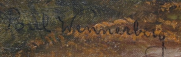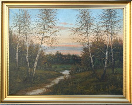 AUTUMNAL SUNSET O/C, signed Poul Wennerberg: 25 3/4'' x 34 3/4'', signed LL, worn frame, 30'' x 39''.