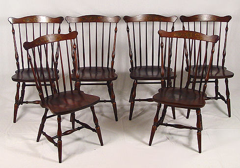 6 SIGNED HITCHCOCK SIDE CHAIRS: Set of 6 matching chairs, hand stenciled grape vine design. Each chair is signed.