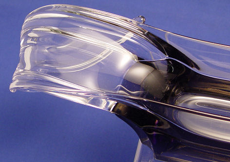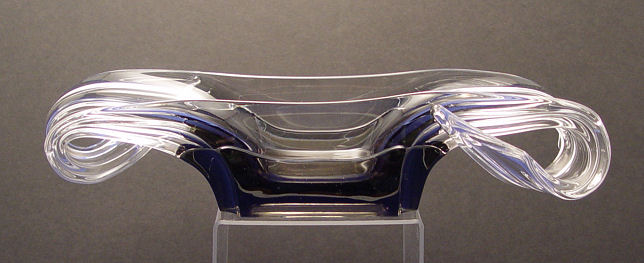 TIFFIN ART GLASS CONSOLE BOWL: Ca. 1959. ''Empress'' flower arranger or console bole, 3 1/4''h. x 15''l., unsigned, free of chips or cracks.