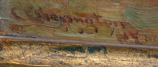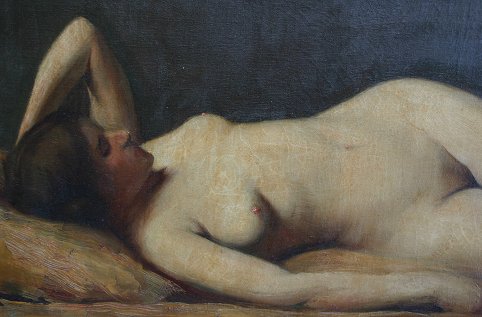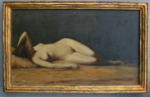 HETHERINGTON, Charles, (American, 1857-): Reclining Nude, (Mrs. Etherington), O/C, 18'' x 30'', original gilt frame with wear, 21'' x 33'', signed LL, '04?.