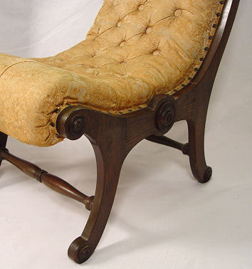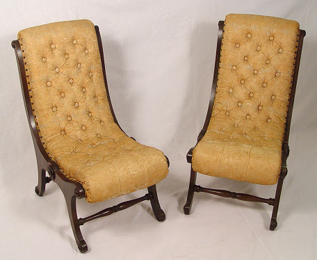PAIR OF VICTORIAN SLIPPER CHAIRS: Tufted back and seat curved as one piece, 30''h, 16''w.