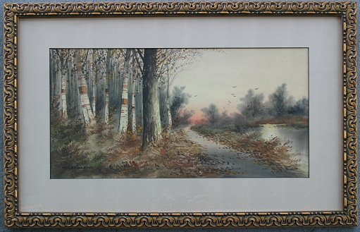 RAYMOND, Grace Russell, (American, 1876-1967): Sunset Landscape, W/C, 9 1/2'' x 20'' sight size, signed LL, fine contemporary frame, 17'' x 27''.