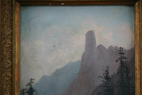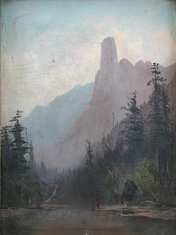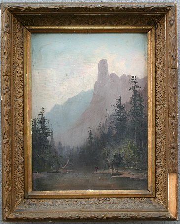 SCHAFER, Frederick Ferdinand ,(American, 1839-1927): ''Half Dome from the Merced'', O/B, 12 1/4'' x 9 1/4'', signed LL, period frame with damage, 15 1/4'' x 12 1/4''.