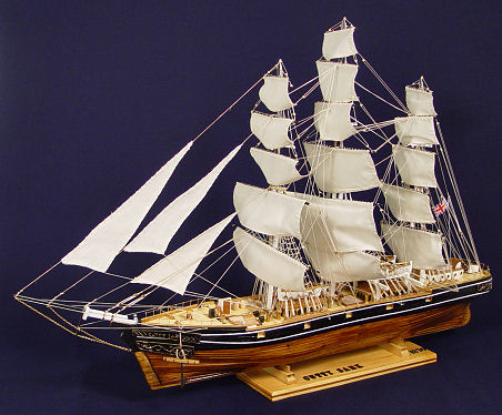 MODEL OF THE 19TH C TALL SHIP, THE ''CUTTY SARK'': Highly detailed, hand crafted, not from a kit, paying great homage to this famous ship. Wood, copper and string construction. Original a tea clipper built in 1869, restored in 1950's and is now on display at dry dock in Greenwich England. This model approx. 29''h, 42'' end to end. Est. $300/500**