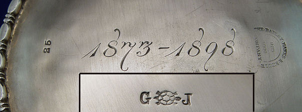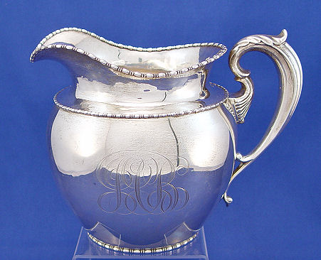 GOODNOW & JENKS STERLING WATER PITCHER FOR BAILEY BANKS & BIDDLE: Inscribed on the underside ''1873-1898'', monogrammed JCB, 6 1/2''h, approx. 636 grams, 20.44 oz.