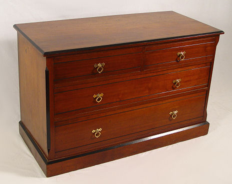 19TH C MAHOGANY LOW CHEST: 2 half length drawers over 2 full length drawers. Dovetail construction. 29 1/4'' h. x 46 1/2'' w. x 21'' d.