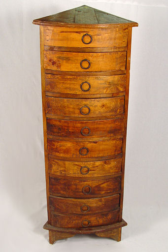 UNIQUE PINE CORNER LINGERIE CHEST: 10 drawers, 49 1/4'' h. x 21'' x 21'' x 18 1/8'' (front).
