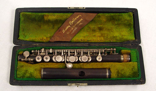 H.BETTONEY BOSTON 3033 WOOD PICCOLO: Marked H.Bettoney Boston 3033. 12'' l. Sold with the case.