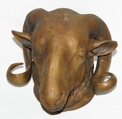 RAMS HEAD BRONZE SCULPTURE: 6'' h., unsigned, age unknown.