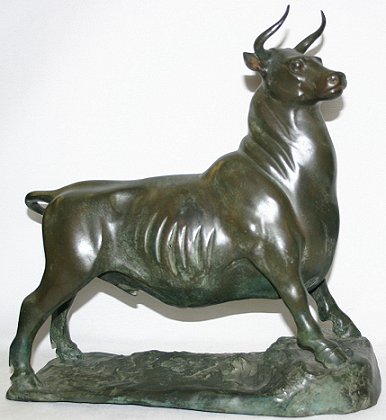 PATINATED BRONZE BULL: 13 1/2'' h., age unknown.