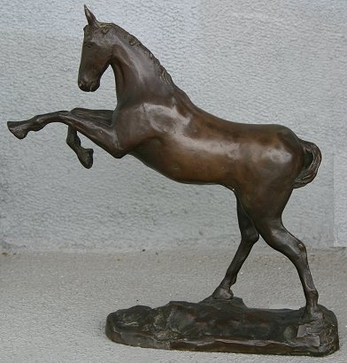SIGNED GERMAN BRONZE HORSE SCULPTURE: 12'' h., incised B, dated '27, foundry stamp underside, P.B.u. Co. Munchen, early 1900's.