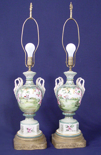 PAIR FRENCH LIMOGES CERAMIC TABLE LAMPS