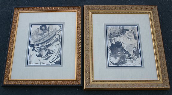 PAIR OF WATERCOLORS SIGNED IRIZARRY: Portrait of a man in a beret, and a Mexican market, both 11'' x 8'', fine contemporary framing, 20'' x 23''.