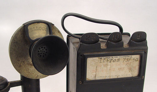 GRAY TELEPHONE PAY STATION COMPANY COIN OP TELEPHONE: One of the earliest, L34418 is the serial number. 11 1/2''h. 10''w. Est. $600/800**