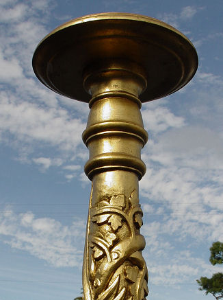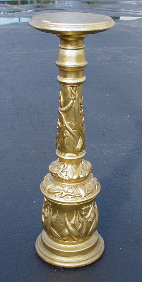 ART NOUVEAU CARVED AND GILT WOOD PEDESTAL: Carved in a naturalistic leaf design, 43''h. the top is 13 1/2'' dia.