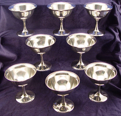 SET OF 8 STERLING SHERBERTS BY FRANK W. SMITH CO: Each 3 3/4'' h., total approx. 576 grams, 18.5 oz. No monogram.
