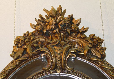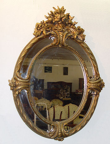 PALATIAL GOLD GILT MIRROR WITH MIRRORED INSET FRAME: Oval in shape, 55'' x 41''.