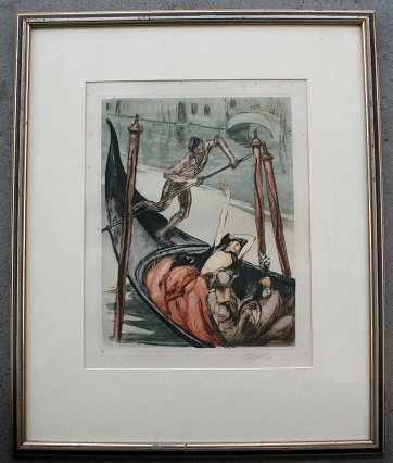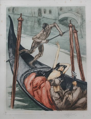 EROTIC VENETIAN CANAL SIGNED BOUDOIR STYLE ETCHING: 19'' x 15'' sight size, signed LR, original frame with wear, 23'' x 19''.