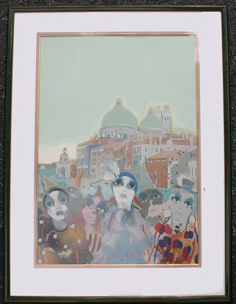 BORSATO, Renato, (Italian, 20th C.): Venetian Masquerade, Lithograph, 27'' x 19'', signed LR, numbered LL V/XXV, custom frame, 35'' x 27 1/2''.