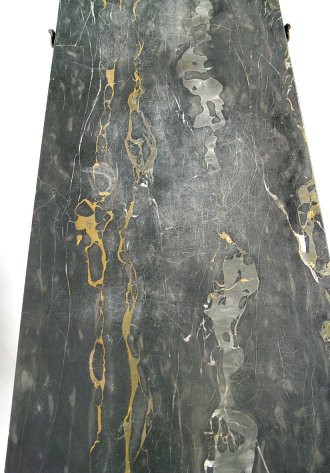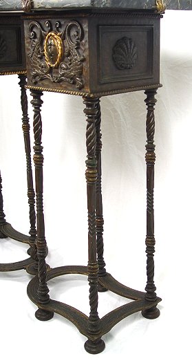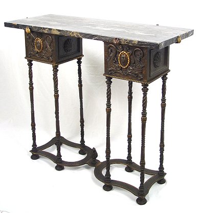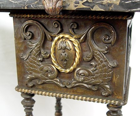 1920's BRONZE MARBLE TOP CONSOLE TABLE: 1920's Gothic Revival style, signed ''Crest''. 31''H. X 34 1/2'' X 13 1/2''.