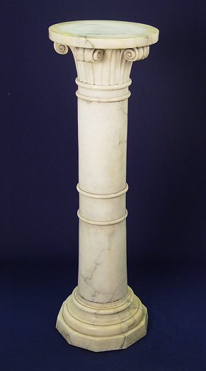 VARIEGATED WHITE MARBLE PEDESTAL: Round top, 12 1/2''dia, multi part construction, 40 1/2''h.