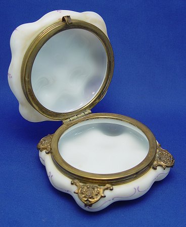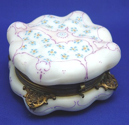 C.F. MONROE WAVECREST GLASS BOX: Listed in the 1895-96 C.F. Monroe catalog as a jewel box. As seen in Wilfred Cohen's book ''Wavecrest The Glass of C.F. Monroe'' pgs. 89 and 181. 2''h. x 5'' square.