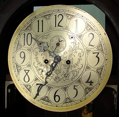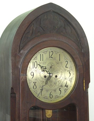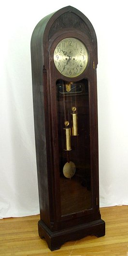 HERSCHEDES GRANDFATHERS CLOCK: Bears a metal nameplate from Hershede Hall Co. declaring this the winner in the 1915 Panama Pacific International Expo. 78''h. x 19'' x 11''.