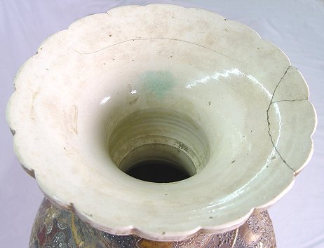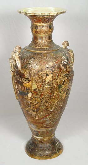 MONUMENTAL 19TH CENTURY SATSUMA URN: 38''h. With older extensive restoration.