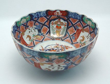 SET OF 3 JAPANESE GRADUATED IMARI BOWLS: Decorated on interior and exterior, with gilded details, dragon center. Lobate band around unmarked foot. Very minute small old on bottom rim of middle bowl. Diameters measure 10'', 8.75'', 7.5''.