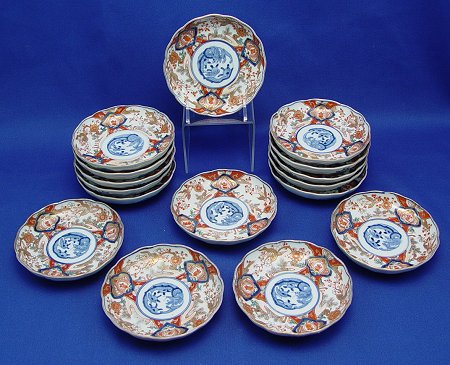 SET OF 16 JAPANESE IMARI SAUCE DISHES: Good luck mark inside foot ring. 4.5'' dia., 1'' high.