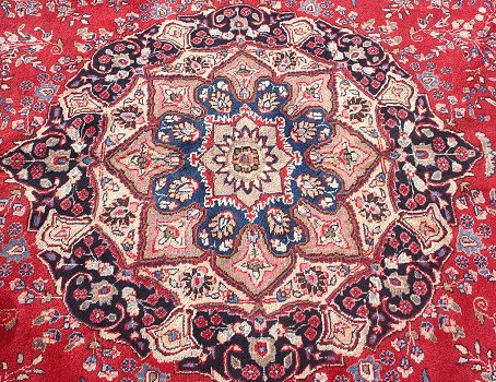 PERSIAN MASHAD CARPET: Approx. 9'8'' X 12'10''. Red with center medallion.