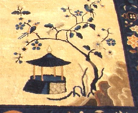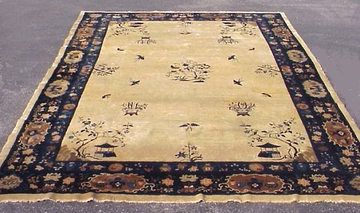 DECO CHINESE NICHOLS CARPET: Traditional blue and cream, good condition, 14'4'' x 9'11''.