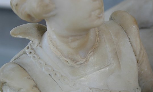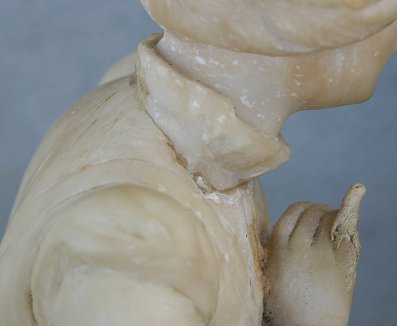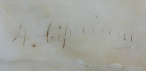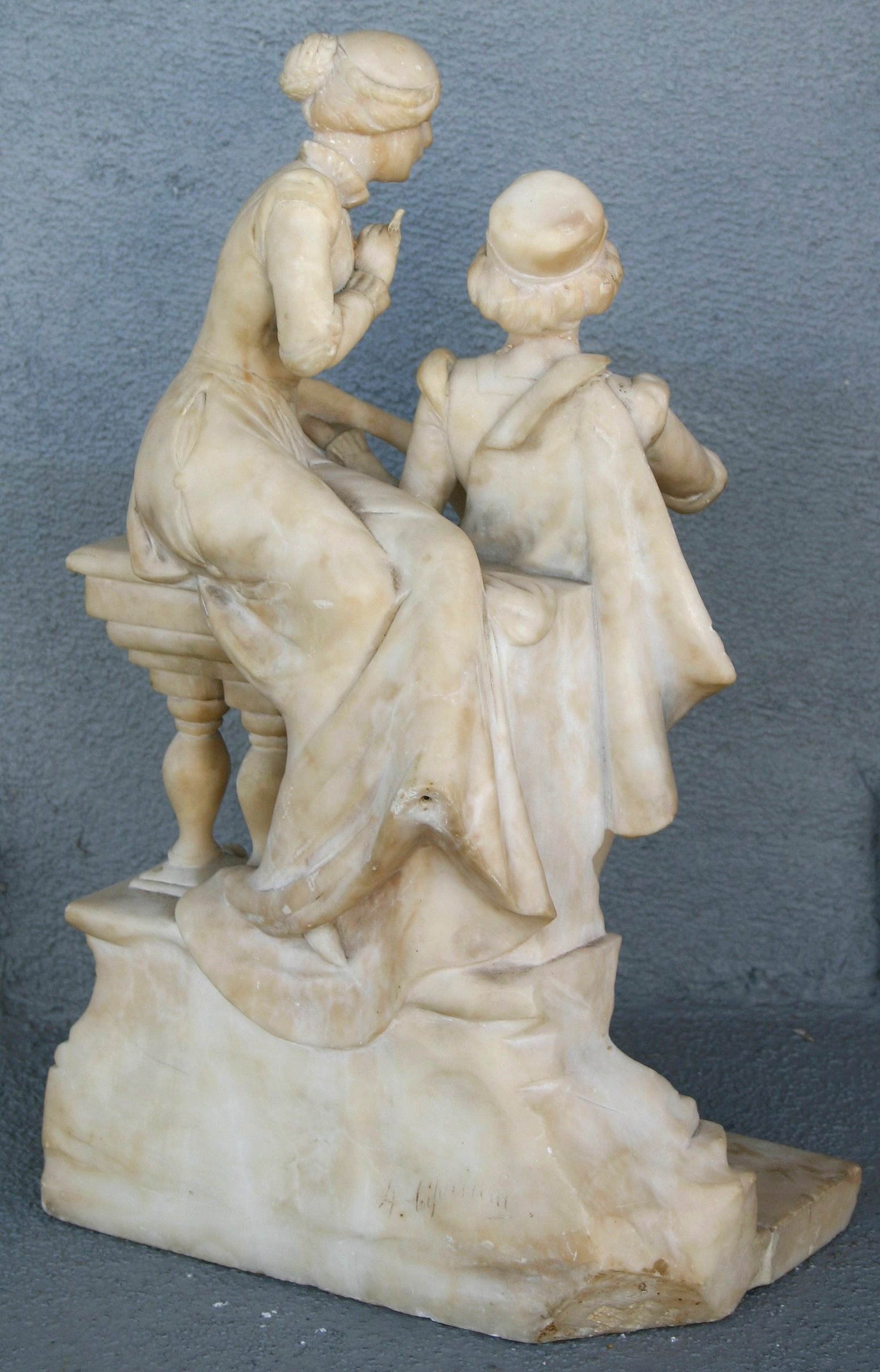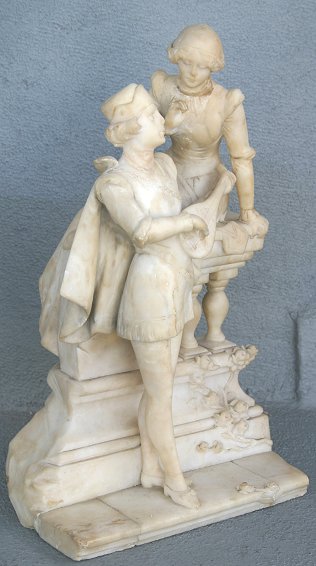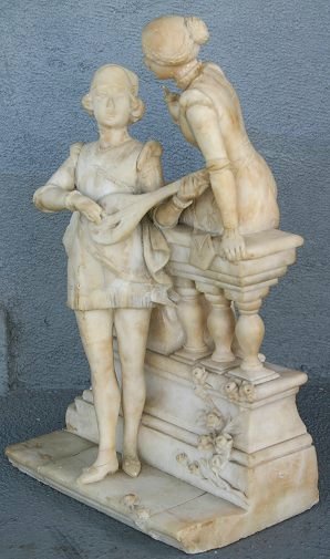 CIPRIANI, A., (Italian, 19th-20th C): Courting scene, Marble Sculpture, 17 3/4''h, depicts a young man serenading a young woman while playing a mandolin; numerous repairs. Please call for condition.