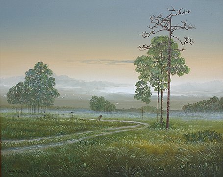 BUTLER, Robert, (American, 20th C): Florida cow pasture landscape, O/C, 24'' x 30'', signed lower left and dated '81, encased in contemporary wood finish frame, 28'' x 34 1/4''.