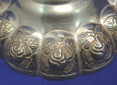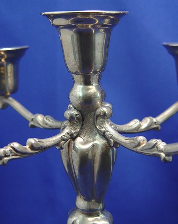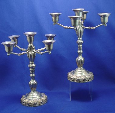 PAIR OF MEXICAN STERLING CANDELABRUM: Five light candle holders with a rose design base, 14''h. Stamped Mexico Sterling 925. Approx. 71 oz.