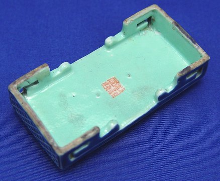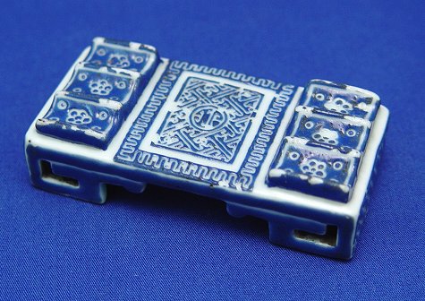 JAPANESE BLUE AND WHITE IMARI BRUSH STAND: Celadon reverse, 1/4'' tall, 3'' long, 1.5'' wide.