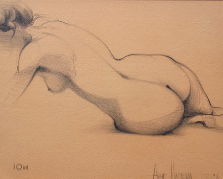 MACADAM, Anne, (American, 20th C): Pair of female reclining nude sketches, Pencil, sight size is 14'' x 17 1/2'', pencil signed lower right dated 1/21/86 and 6/26/87. Macadam is a member of the Provincetown Art Association.