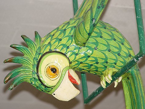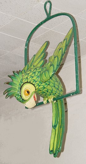 BUSTAMANTE, Sergio, (Amer., 1942- ): Green parrot acrylic on paper mache. Signed. Approx. 40''h.